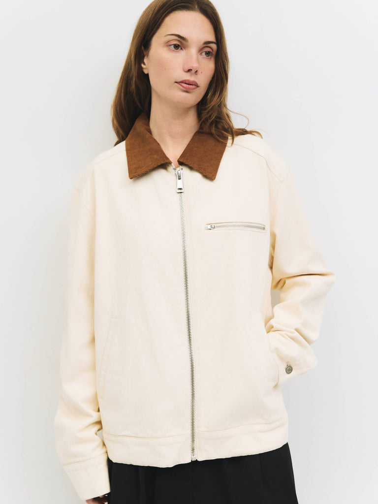 Meet the Kline Jacket, your new go-to utility jacket for spring. Crafted from durable midweight twill with a soft, contrast corduroy collar, it's the perfect on-trend layering piece. This jacket combines a workwear-inspired aesthetic with modern details, making it a versatile and stylish outerwear essential for any contemporary wardrobe.