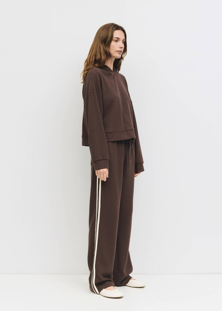 The Enzo Pants effortlessly blend sporty style with relaxed comfort. Featuring a wide-leg fit and a soft, elastic drawstring waistband, they are perfect for both active days and laid-back moments. Crafted from a cozy midweight waffle knit, they are finished with stylish double stripes down the sides and a convenient back patch pocket for a modern, athletic edge. Features: Midweight waffle knit fabric Relaxed, wide-leg fit Elastic drawstring waistband Side stripe detail Back patch pocket