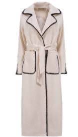 Level up your style with the ASTRID Overcoat! Made in Italy with cream fabric and detailed black stitching, this coat brings an elegant touch to any outfit. Perfect for chilly weather and a must-have for any fashion-forward individual. Grab yours now!