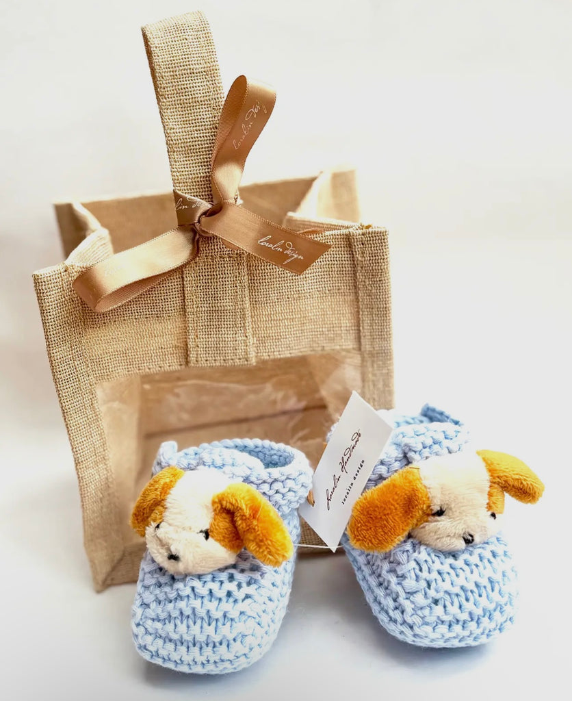 Handmade booties 0-6 months. 100% cotton. Hand wash.