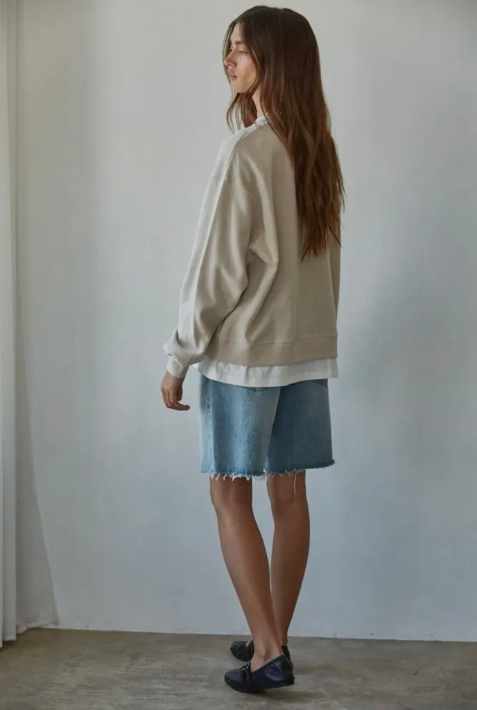 Get cozy in style with our Cotton Blend Layered Sweatshirt! This quirky and playful sweatshirt in Beige will be your go-to for chilly days. With its unique layered design, it pairs perfectly with your favorite jeans for a casual yet fashionable look.