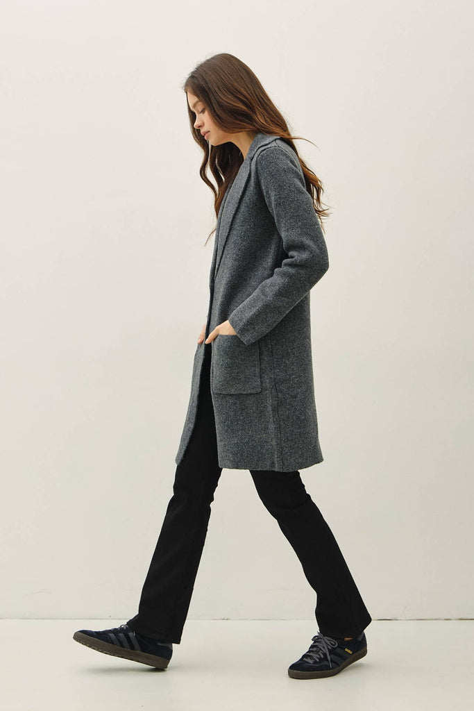 Throw on this cozy coatigan and instantly level up your layering game. With its relaxed silhouette and knee-length cut, it's the perfect piece for those in-between seasons when you can't decide between a sweater and a coat. The notched collar and two-button front give it a polished vibe, while the patch pockets add practical charm. Long sleeves and medium-heavy weight fabric make it ideal for fall and winter adventures. Whether you're dressing it up or keeping it casual, this versatile essential works overtime in your wardrobe.
